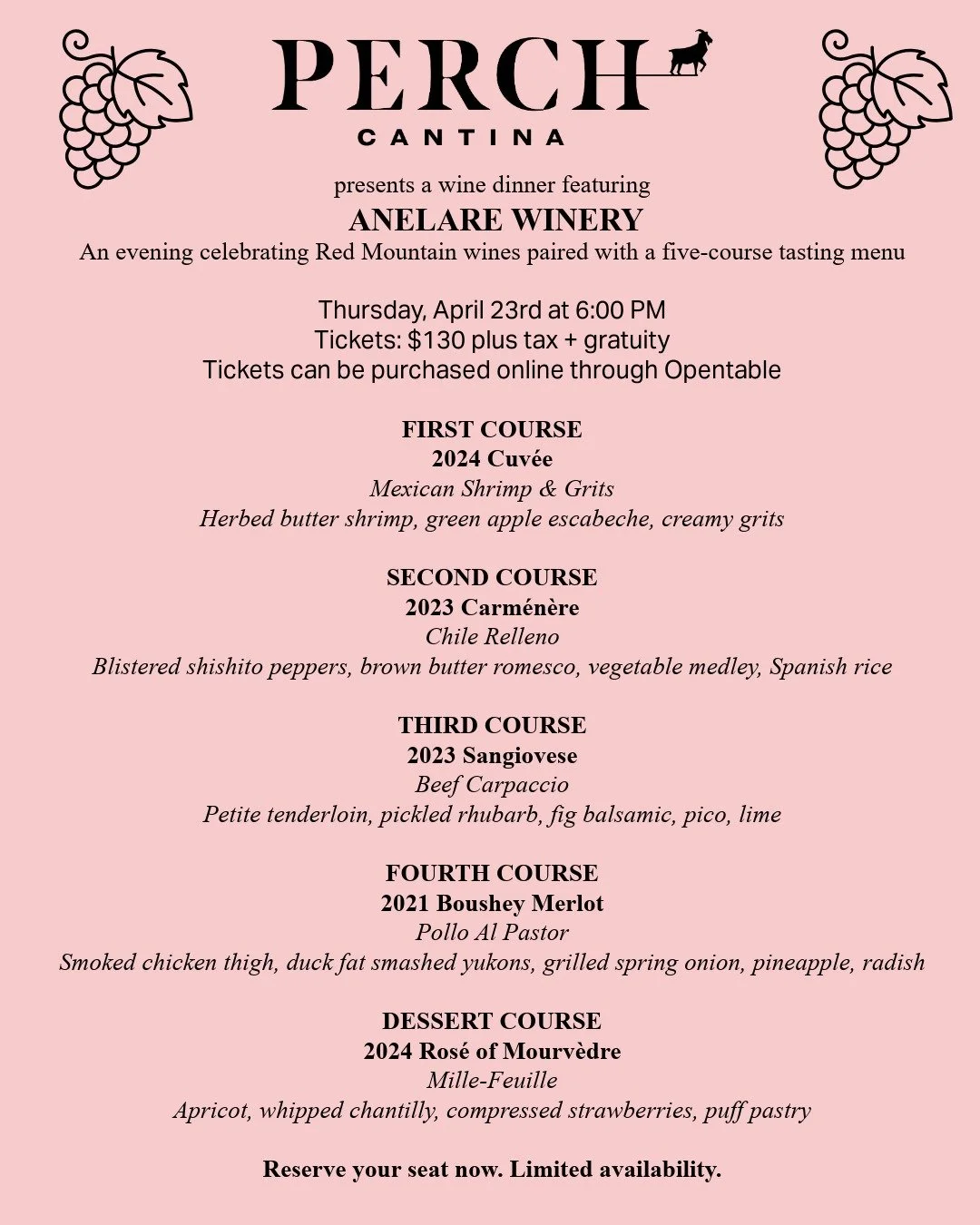 *We will be closed on Sunday, April 19th for our SOLD OUT, Spring Wine Club Release Event